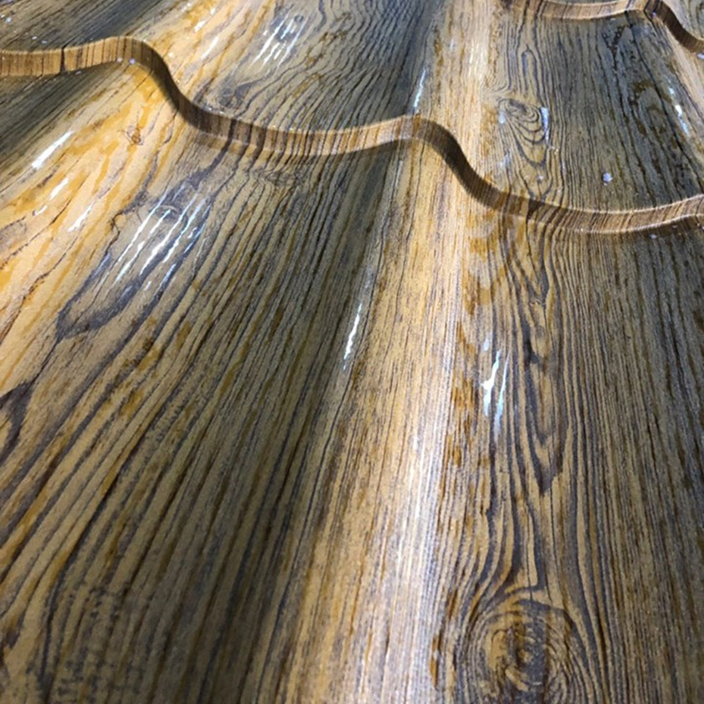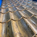 วัสดุหลังคาเหล็กชุบสังกะสีเคลือบสีเป็นคำที่เน้นการเคลือบป้องกันที่ใช้กับพื้นผิวของแผ่น เพิ่มความต้านทานต่อการกัดกร่อนและความเสียหายต่อสิ่งแวดล้อม พื้นผิวไม้แบบ 3 มิติเพิ่มพื้นผิวที่สมจริงซึ่งเลียนแบบรูปลักษณ์ของไม้ธรรมชาติ มอบทางเลือกที่มีเอกลักษณ์และน่าดึงดูดนอกเหนือจากหลังคาโลหะแบบดั้งเดิม การผสมผสานคุณสมบัติต่างๆ ทำให้แผ่นหลังคาเหล่านี้เป็นตัวเลือกยอดนิยมสำหรับผู้ที่ต้องการทั้งฟังก์ชั่นการใช้งานและสไตล์ในระบบหลังคา